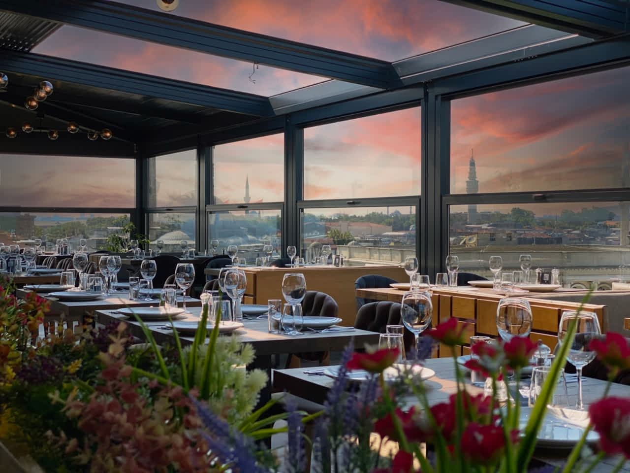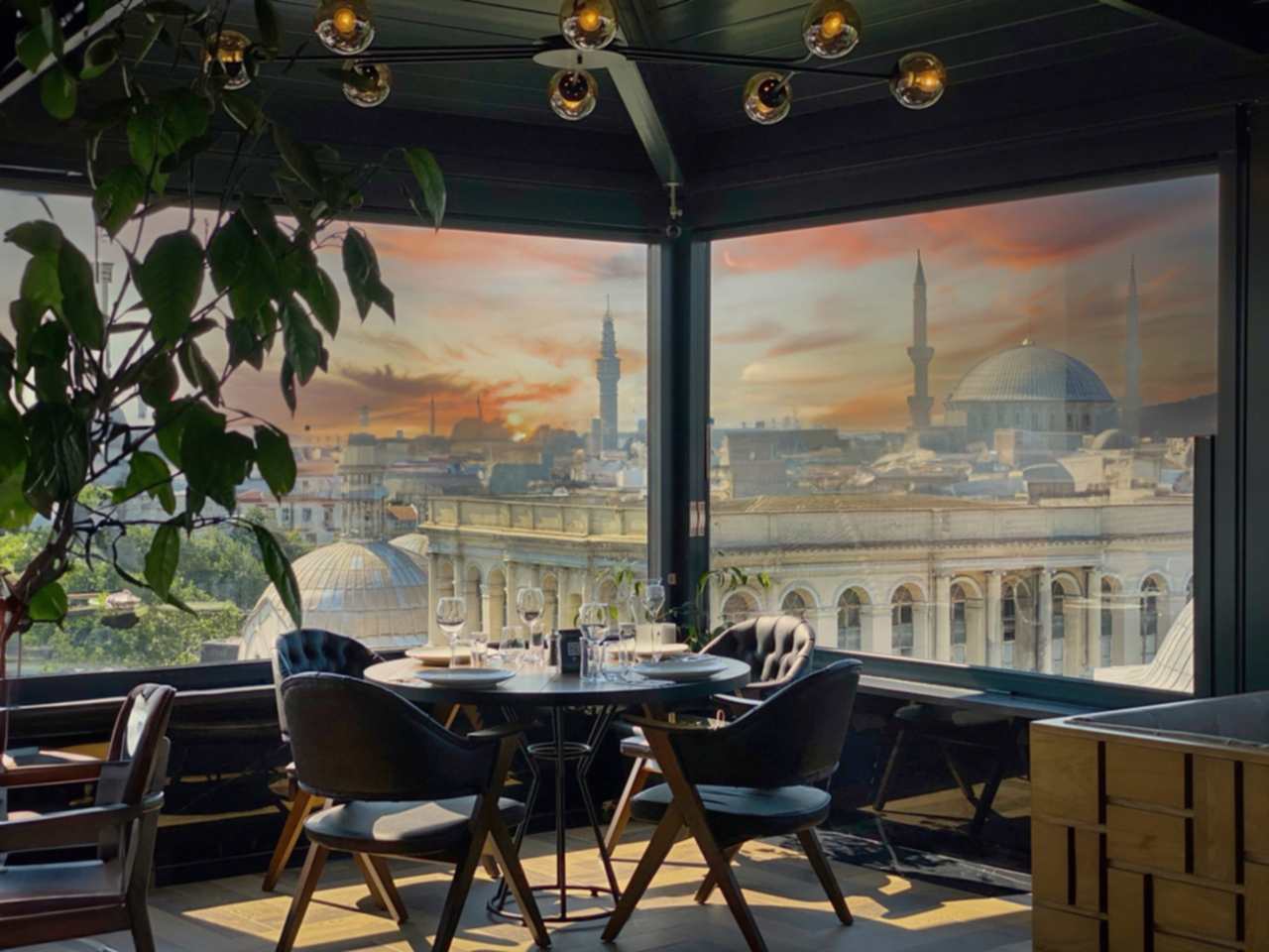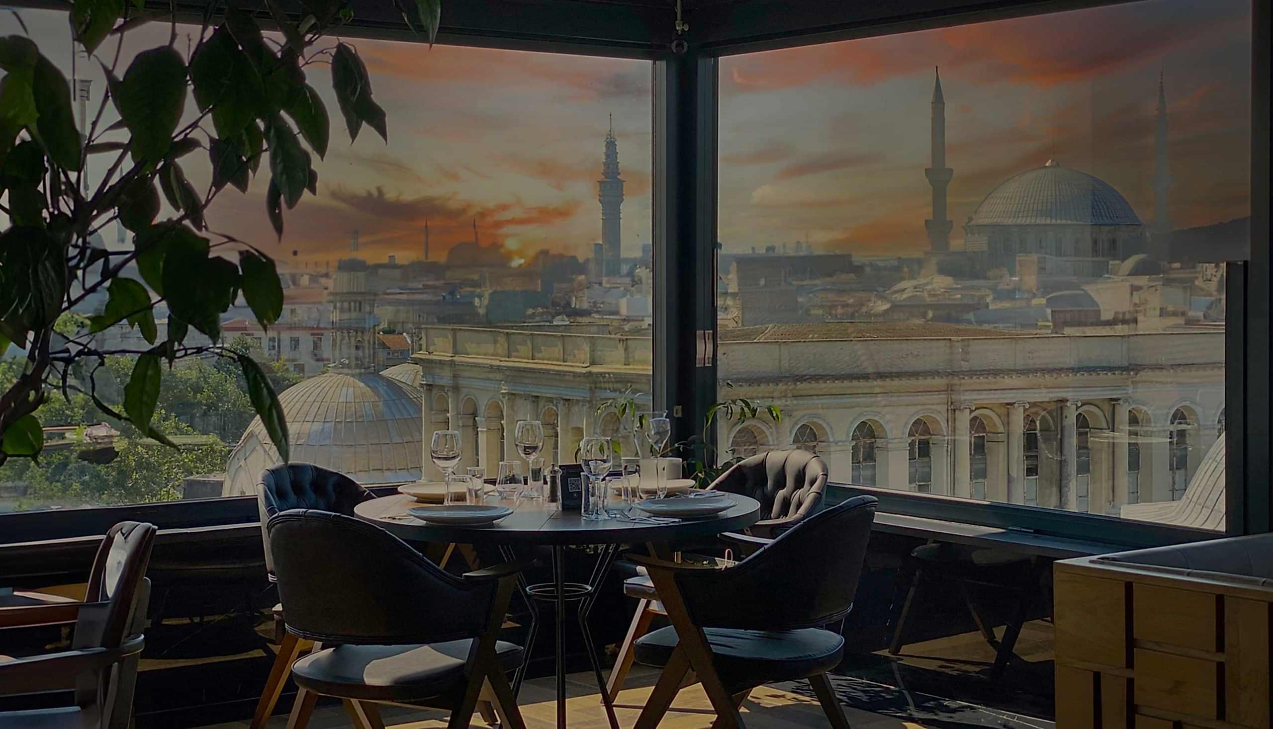 LOTI ROOF LOUNGE, İstanbul'un Boğaz manzarasını sunarak unutulmaz bir deneyim yaşatıyor. 360 derece panoramik manzarası ve lezzetli yemeklerle İstanbul'u keşfetmek isteyenler için ideal bir tercih.